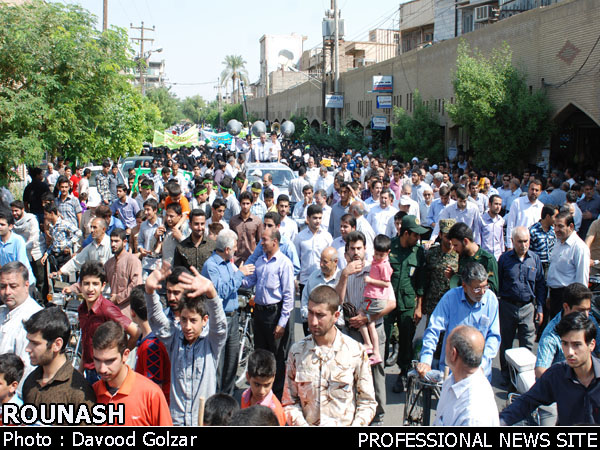 به گزارش خبرنگار روناش ، مردم ولایتمدار و همیشه در صحنه دزفول ، در پی هتک حرمت به ساحت مقدس پیامبر عظیم الشان اسلام حضرت محمد مصطفی (ص) توسط دست نشاندگان آمریکایی اسرائیلی ، ساعت ۱۰ و ۳۰ دقیقه صبح امروز دست به راهپیمایی ای گسترده زده و از این گستاخان اعلام برائت نمودند .